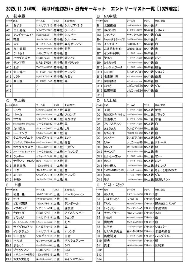 エントリーリスト