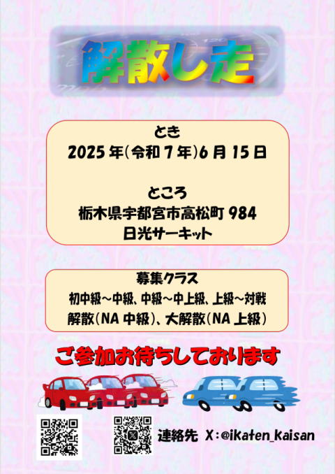 おススメポイント:いか天東日本大会2024を大いに盛り上げたチーム「解散」メンバーによるドリフトイベント!各クラスに解散メンバーが乱入!?ノンストップでバチバチ走りましょう!