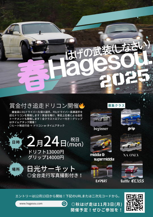 募集クラス:ドリフト初中級・中級・中上級・上級・解散・大解散